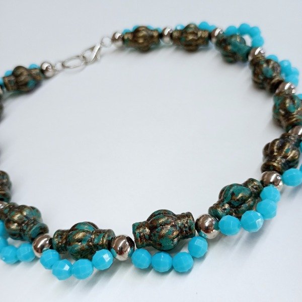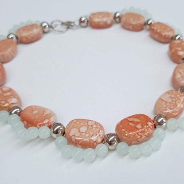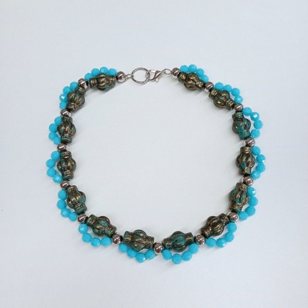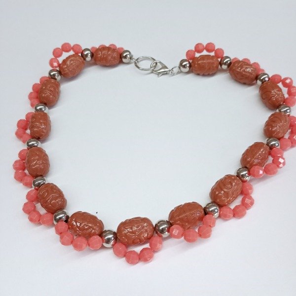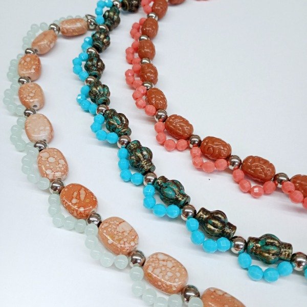 Gargantilla elastizada de base de cuentas de acrílico grandes acompañadas en uno de sus lados por "onditas" de cuentas más chicas a contratono.